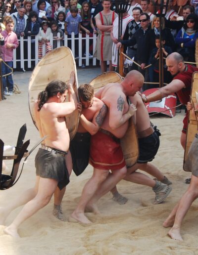 Combatiendo en el anfiteatro protegidos por equipos pesados, el contendiente que se declaraba vencido debía esperar el veredicto de los espectadores que , con sus gritos, reclamaba o no su muerte. El oficio fue cada vez más peligroso: si bajo Augusto la muerte del vencido era una excepción, bajo Marco Aurelio se convertiría en una norma.